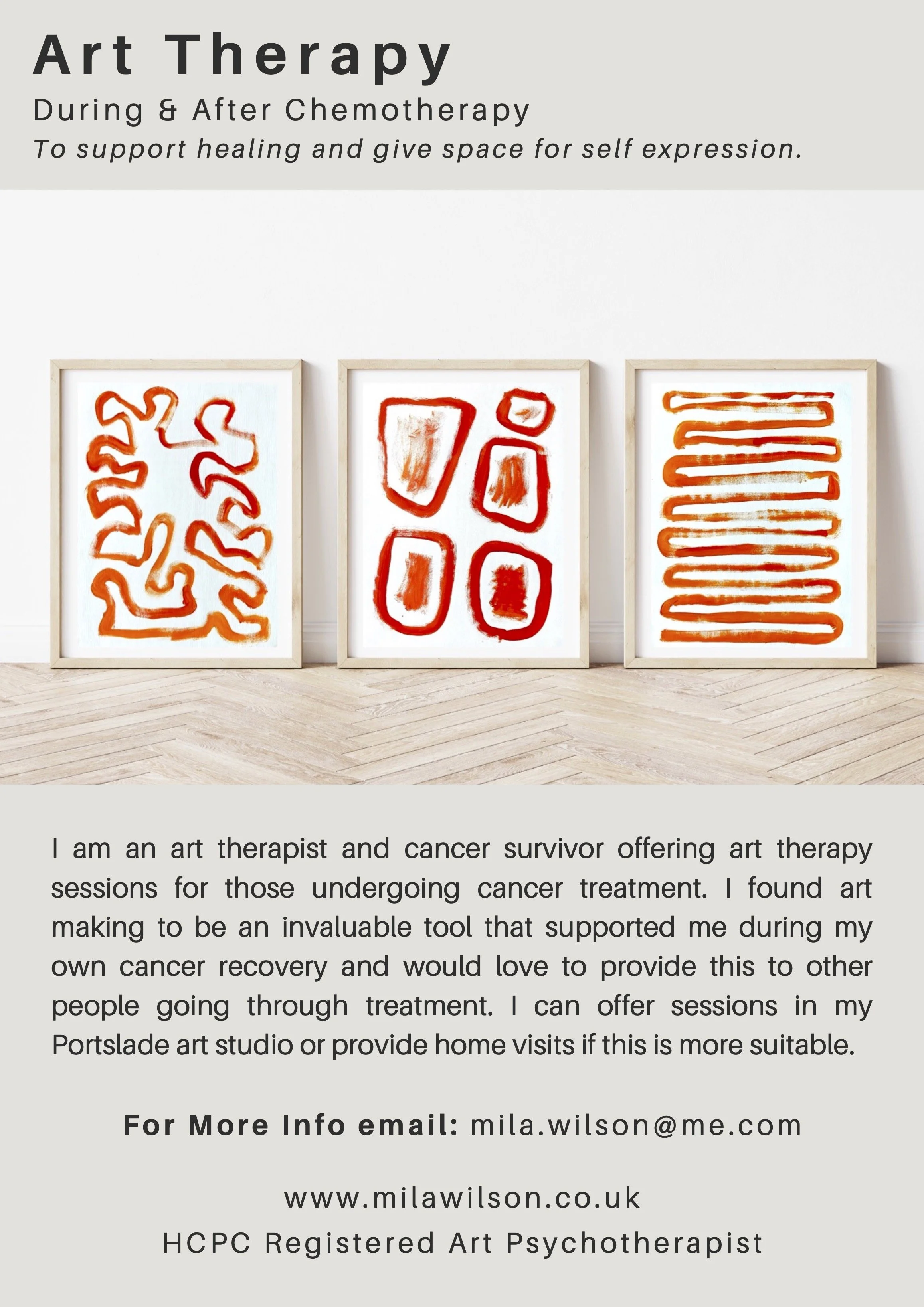 I also provide art therapy taster workshops for groups (£20 each for a minimum of 4 people or £45 each for 2-3 people).